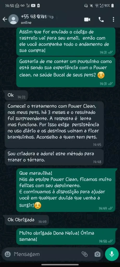O Power Clean Spray por sua vez, tem uma fórmula inovadora que traz todos os benefícios avançados para a remoção do tártaro e eliminação do mau hálito, com um investimento bem menor e com a facilidade na aplicação, você vai estar proporcionamento um cuidado com a higiene bucal do seu pet. Sem ter que investir muito e sem ter que passar por dificuldades na hora de aplicar, sem contar os problemas que você evita só de estar usando o Power Clean Spray de maneira regular.
